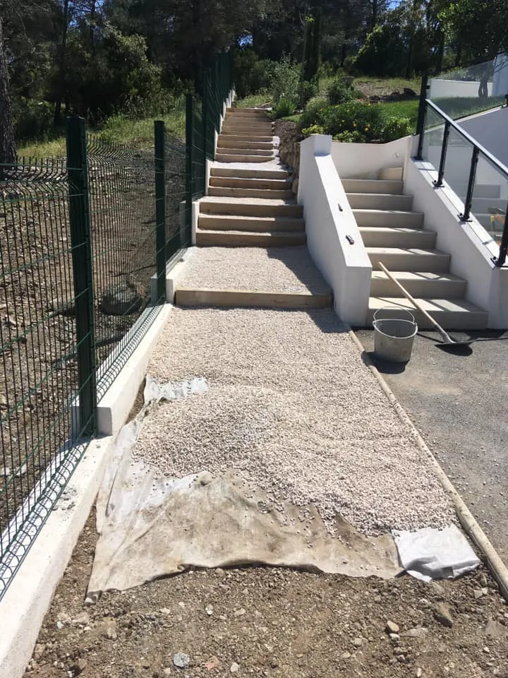 Canalisation des eaux pluviales et création d’une allée gravillonnée avec emmarchements